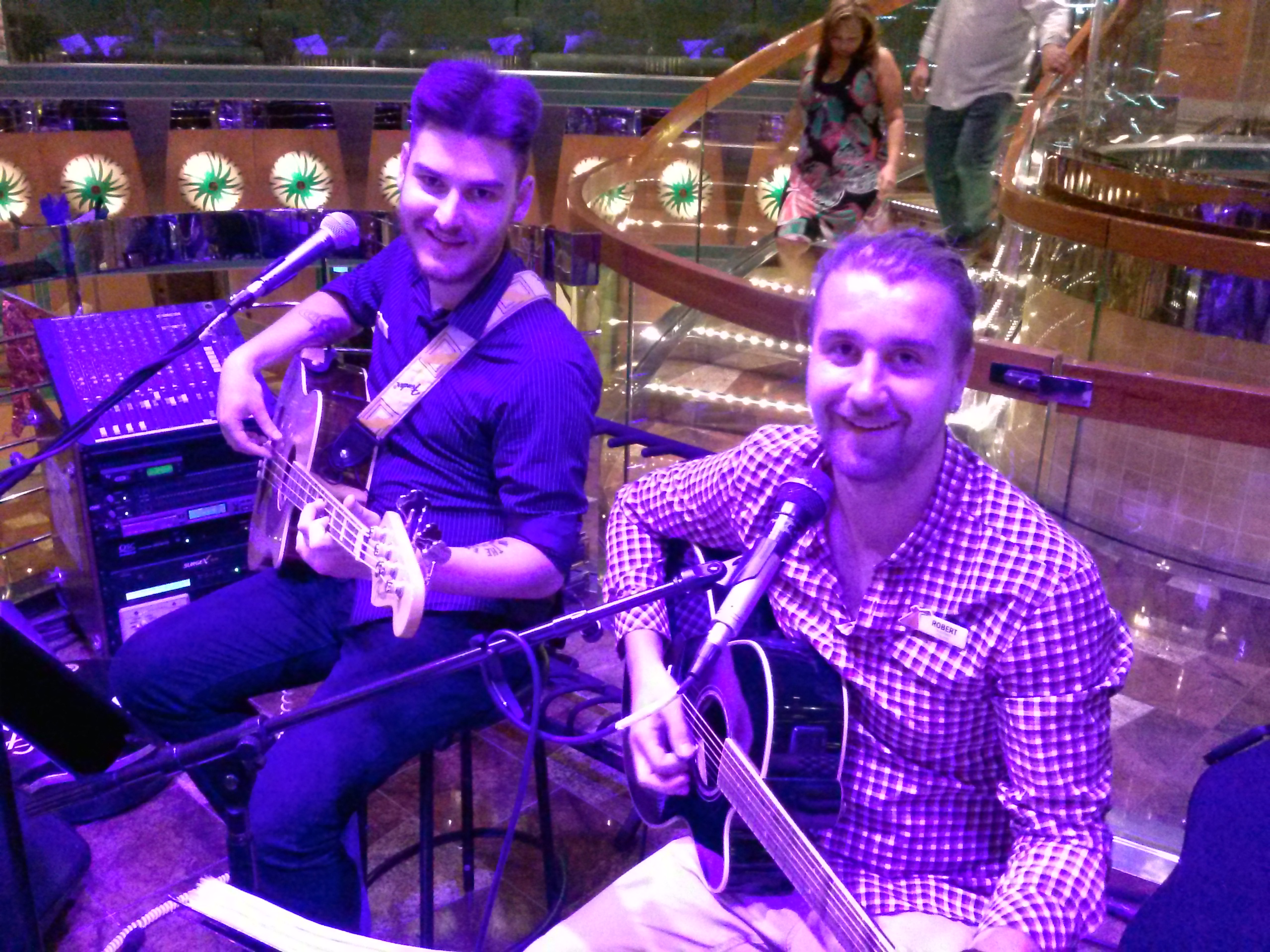 Wspomniane w poprzednim wpisie jedzenie i środki podtrzymujące jego świeżość odbiły się na mojej skórze w postaci ostrej pokrzywki.. Postanowiłem wybrać się do lekarza statkowego. Aby dostać się do medical center muszę zejść 3 piętra w dół i iść jakieś 500 metrów prosto na decku 0. Wizyta trwała 10-15 minut ( łącznie z okresem oczekiwania ) czyli jakieś 10% całego czasu jaki tracimy na wizyty u lekarza w Polsce. Dostałem 6 lekarstw. Steryd Prednisone, Leki na alergie, osłonowe na żołądek, na noc antyhistaminowe, magnez oraz hydrokortyzon do smarowania.. Po przyjęciu wszystkich na raz według zalecenia lekarza moje ciało świeciło w nocy sterydami. Uczulenie i tak nie schodzi a już kilka dni po stosowaniu leków.. zobaczymy co będzie dalej. Jeżeli będzie się pogarszać to wyślą mnie emergency do Polski. Cały drugi tydzień mieliśmy zakaz wychodzenia na ląd. Większość czasu spędziłem na rozmyślaniu i chodzeniu po statku. Muzycznie gramy codziennie po 4,5 godzin w lobby. Scena ulokowana jest na drugim piętrze lobby. Akustyka jak studnia. Lobby w górę ciągnie się na 12 pięter, z każdego piętra można nas słuchać lub oglądać. Wydawałoby się , że w lobby nie ma ludzi ale pozory mylą. Codziennie koło 19:00 ludzi jest jak mrówek. Wielcy Amerykanie przechadzają przez lobby do show theater lub do restauracji albo kasyna. Część z nich siada swoimi puszystymi tyłeczkami na szerokich kanapach i nas słucha a druga część nie zwraca na nas uwagi. Co już zdążyliśmy zauważyć to fakt , że Amerykanie lubią country-bluesa i rock&rolla. Młodzi często zgłaszają prośby o granie np. Beyonce. Zazwyczaj mówimy wtedy , że zagramy dany utwór w następnym secie lub jutro po czym goście zapominają o wszystkim. Raz w tygodniu mamy wolne, wtedy jakiś inny zespół nas zastępuje i gra w lobby zazwyczaj zmieniając nam całkowicie ustawienia na mikserze i monitorach co doprowadza nas do szału po każdym day off. Dwa tygodnie na statku a wydaję mi się jakbym był tu pół życia. Codziennie to samo sprawia , że czas się dłuży. Galvestone w tym tygodniu bardzo zimny , około 7 stopni na plusie natomiast Meksyk bardzo gorący ponad 30. Mając tyle czasu wolnego bo zazwyczaj do 17:00 nic nie robimy albo mamy treningi dla załogi, zacząłem analizować koszty carnivala oraz jego zarobki. Co się dowiedziałem statek dziennie zużywa 100 000 dolarów na paliwo. Przeciętnie kurs trwa tydzień. Pasażerów jest ok. 4 000 a załogi 1 500 osób. Średnio wakacje tygodniowe dla jednej osoby kosztują 600 dolarów. Jedzenie jest wliczone w cenę. Amerykanie płacą za pamiątki, kasyno, alkohol. Na pewno Carnival sporo zarabia ale ile dokładnie.. jeszcze nie jestem w stanie tego stwierdzić. Sam internet w najtańszej opcji za 480 minut używania kosztuje 159 dolarów.. Ja wydaję ok. 700zł miesięcznie na to aby połączyć się z netem i napisać coś na facebooku albo odpisać na maila, dodatkowo internet w laptopie praktycznie nie działa, tylko na komórce można coś zrobić (komórka zużywa mniej danych, strony są skompresowane i szybciej się otwierają).. 3 tydzień zacznie się jak każdy poprzedni. Galvestone-Progresso-Cozumel-Galvestone. Kursy zmienią się 15 marca. Będziemy na morzu o dwa dni dłużej ale będziemy pływać przez Jamajkę (łojo jo jo joj, Bob Marley ). Cóż, statek Carnival śledziuch ( tak na niego mówię ponieważ piętra załogi tak pachną..) brnie do przodu a ja staram się nie odliczać dni tylko korzystać z ciepła zatoki meksykańskiej. Stay tuned. Rob